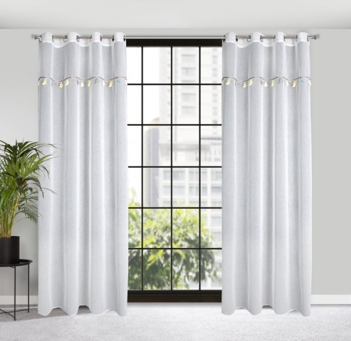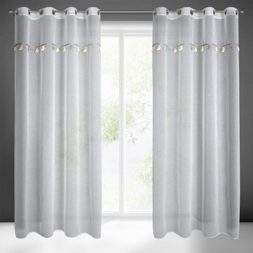 Готова штора з вшитим декоративним мотивом з дитячим мотивом, ширина: 140 см, довжина: 250 см, колір: білий, вага: 50 GSM, - АУКЦІОН ЗА 1 ШТ. - Склад: 100% поліестер