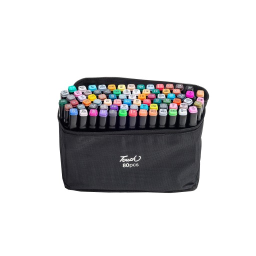 Набір із 80 фломастерів різноманітних і насичених кольорів - це пропозиція для всіх, хто хоче почати свою пригоду з малювання, і для тих, хто малює щодня. Пігментація спиртових чорнил, які містяться в ручках, гарантує, що малюнки, зроблені ними, будуть чіткими, насиченими і довго не тьмяніють.