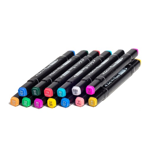 Набір із 168 фломастерів різноманітних і насичених кольорів - це пропозиція для всіх, хто хоче почати свою пригоду з малювання, і для тих, хто малює щодня. Пігментація спиртових чорнил, які містяться в ручках, гарантує, що малюнки, зроблені ними, будуть чіткими, насиченими і довго не тьмяніють.