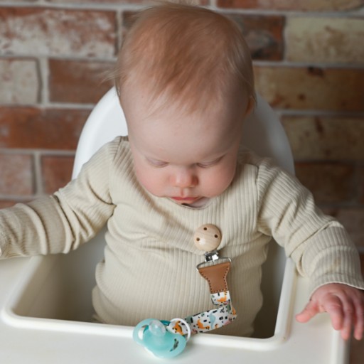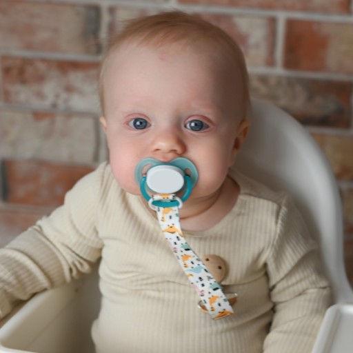 Просто повісьте пустушку на одну сторону стрічки, а іншу прикріпіть за допомогою кліпси до одягу вашої дитини, і все!