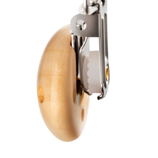 Дерев'яна кліпса має округлі форми, щоб уникнути випадкового травмування дитини.