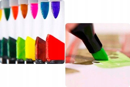 Маркери мають інтенсивні та яскраві кольори, що дозволяє створювати цікаві та гармонійні композиції. Крім того, вони водонепроникні, що означає, що їх можна використовувати на різних поверхнях, включаючи папір, картон, метал, скло, кераміку та пластик.