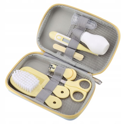 1. 8 основних інструментів для догляду за дитиною, які задовольнять ваші потреби. У набір входить дитяча щітка, гребінець, кусачки для нігтів, пилка для нігтів, ножиці, очищувач для носа, термометр і зубна щітка для пальців.