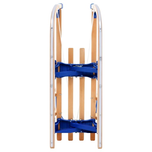 Складані дерев'яні сани зі спинкою подарують вам масу вражень цієї зими. Міцні металеві планки, що проходять по всій довжині полозів, забезпечують плавну їзду навіть на дуже крутих місцях.