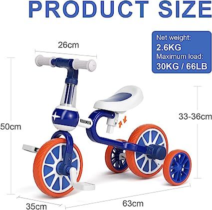 - ЛЕГКЕ ЗБИРАННЯ: це легкий триколісний велосипед для дітей, який можна встановити за лічені хвилини, дотримуючись інструкцій зі встановлення в посібнику користувача або відео. Дитячий велосипед KORIMEFA має функцію регулювання сидіння, а висота сидіння регулюється від 33 см до 36 см.