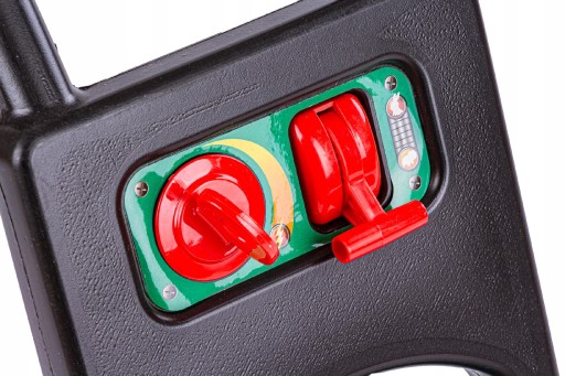 Косарка має основну панель, в якій розміщені різнокольорові кульки, які весело «стрибають» під час їзди. Він також має стартовий трос, який потрібно потягнути, щоб «завести» косарку. Після витягування волосінь почне втягуватися, видаючи звук втягування волосіні. Косарка має міні-панель керування поруч з ручкою. Там ви знайдете ручку на пусковому механізмі та манекен рукоятки, яка регулює швидкість косарки. Що робити, якщо у вас закінчилося паливо? У нашому наборі також є каністра, завдяки якій можна швидко залити паливо і веселощі продовжувати (заливна горловина є муляжем). У набір також входить шолом, завдяки якому маленький садівник буде повністю екіпірований і підготовлений до роботи в саду.