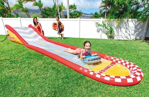 Racing Funto - гоночна водна гірка для справжніх любителів пригод! Ця фантастична гірка Intex з дошками в комплекті забезпечує чудові моменти розваг на воді та освіження в літні дні.