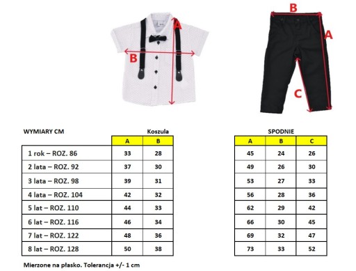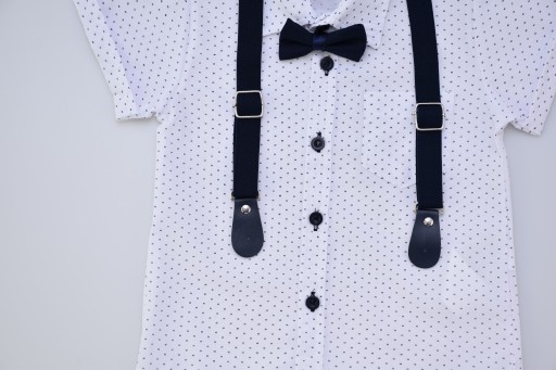 Елегантний комплект складається з сорочки з краваткою-метеликом і штанів на підтяжках.