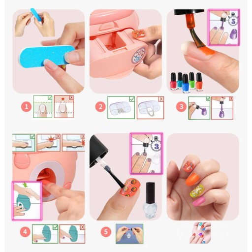 ⭐ Дитячий манікюрний набір має багато функцій та аксесуарів, які дозволяють вашій дитині створювати власний стиль нігтів. Набір містить різні кольори лаку для нігтів і багато інших елементів, тому ваша дитина може створювати різні візерунки та комбінації.