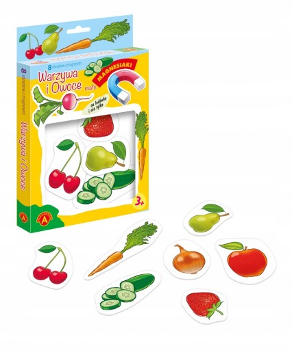 Magnesiaki Small Vegetables and Fruits - це набір тематичних картинок, покритих магнітною фольгою зі зворотного боку. Завдяки цьому картини можна розташувати не тільки на столі чи підлозі, а й розмістити на вертикальній стінці холодильника чи інших металевих поверхнях.