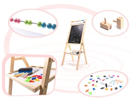 Дерев'яна дошка 3в1 мольберт крейда маркери + папір