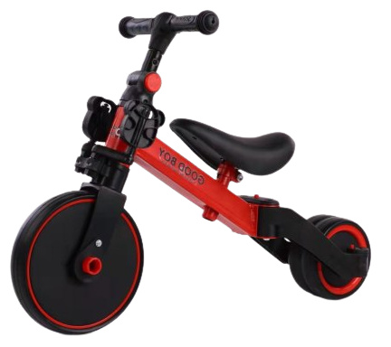 Перший — триколісний біговий велосипед! Якщо закріпити педалі в спеціальних тримачах і розвести колеса в сторони, то вийде зручний, стійкий автомобіль, чудовий для перших пригод на колесах!