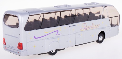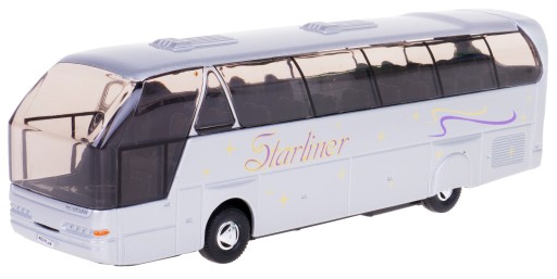 Туристичний автобус NEOPLAN STRLINER в масштабі 1:64 від WELLY ретельно виготовлений з металу і пластику з відкатним приводом на гумових шинах і дверима, що відкриваються з боку пасажира.