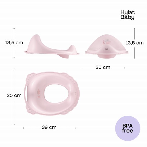 РОЗМІРИ - Дитяче сидіння для унітазу з еластомеру та поліпропілену (без BPA та пластифікаторів) розміри: Д/Ш/В 39 см / 30 см / 13,5 см