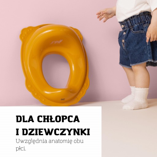 ЕРГОНОМІКА - Накладка призначена як для хлопчиків, так і для дівчаток. Він враховує анатомію обох статей. Форма і розмір дитячого сидіння для унітазу адаптовані до 99% всіх унітазів. Це чудове рішення для сімей, які багато подорожують, адже дитина може користуватися сидінням унітазу і в громадських туалетах.