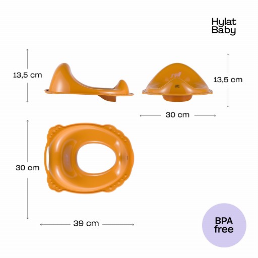 РОЗМІРИ - Дитяче сидіння для унітазу з еластомеру та поліпропілену (без BPA та пластифікаторів) розміри: Д/Ш/В 39 см / 30 см / 13,5 см