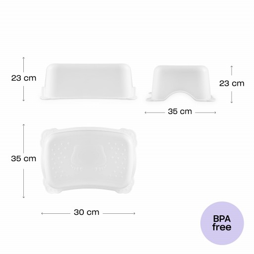 ГІГІЄНА - дитина може дістатися до раковини з цією підставкою для ніг, її не потрібно тримати під рукою або на колінах. Також при поході в туалет ця підставка для ніг є неоціненною допомогою - дитина може сама сидіти на сидінні унітазу.