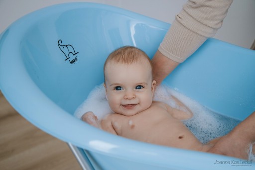 Синя дитяча ванночка Lapsi серії Sonik ідеально підходить для купання немовлят і дітей старшого віку.