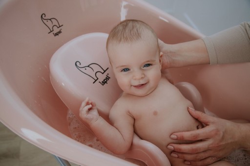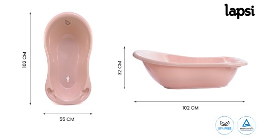 Дитяча ванночка Lapsi з серії Sonik рожевого кольору ідеально підходить для купання немовлят і дітей старшого віку.