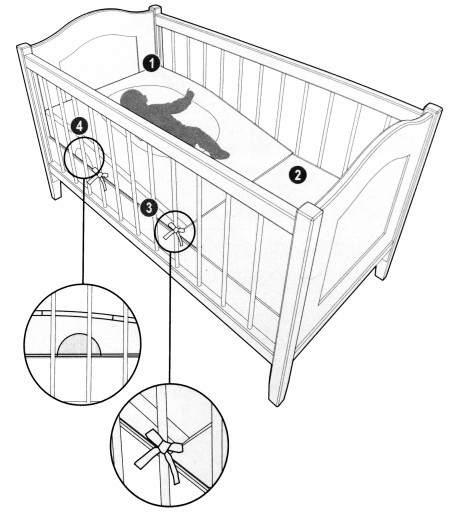 - Відстань між верхньою частиною матраца та ліжечком не може бути більше 2 пальців!