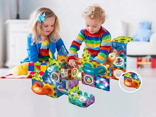 Відкрийте для себенескінченні можливостітворче будівництво з нашим набором магнітних цеглинок! Набір містить75 кольорових елементівякі дозволяють створювати фантастичнідоріжки та слайди.