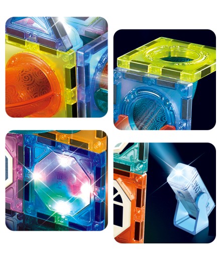 Сяючі елементи в наших магнітних блоках даютьвау ефектдо конструкції, побудованої вашою дитиною. З їх допомогою веселощів стає ще більшебільш привабливимдля маленьких будівельників!