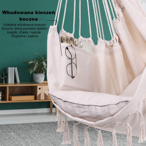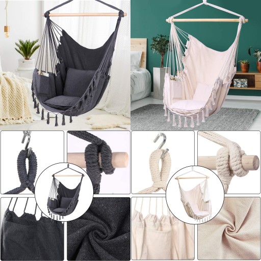 Підвісні крісла для саду відрізняються різноманітністю моделей, як і матеріалів, з яких вони можуть бути виготовлені. Часто вибирають тканини, такі як бавовна або полікоттон, які можна підвісити за допомогою ланцюжка або гачка.Наше крісло виготовлено з 70% бавовни.