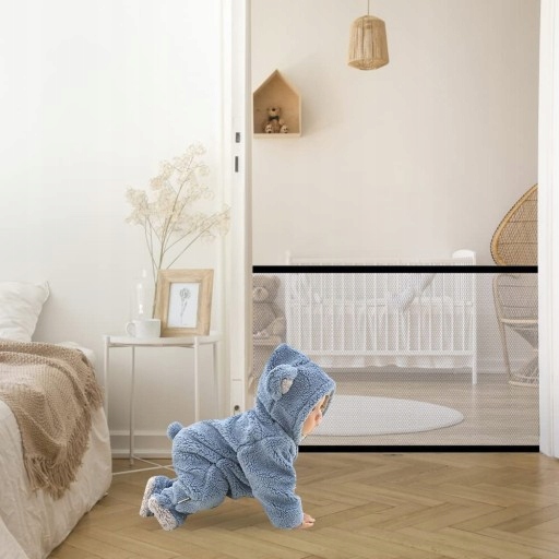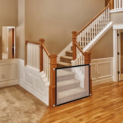 Дитячі захисні ворота виготовлені з нейлонової сітки та телескопічної жердини з нержавіючої сталі, міцні, захищені від укусів і їх нелегко зламати собакам.