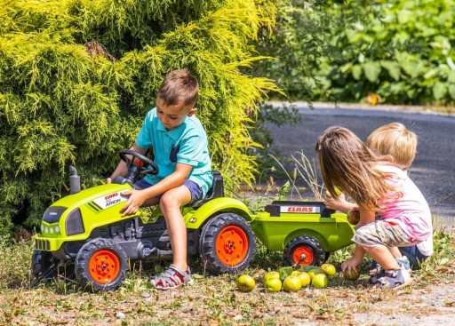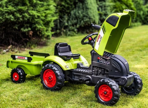 Дитячий педальний трактор CLAAS з причепом виготовлений з якісного пластику. Транспортний засіб призначений для дітей віком від 2 до 5 років. Ця модель сподобається кожному молодому трактористу, техніка виконана в оригінальних кольорах по ліцензії Claas.
