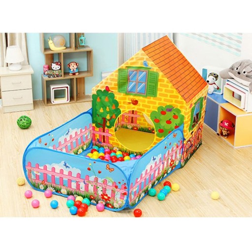 Вся тема намету стилізована під ферму з садом, який служить сухим басейном для дітей.