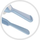 Закруглені зубчики гребінця не дратують чутливу шкіру, а синтетична щетина щітки гарантує безпечний і приємний догляд за ніжними восками малюка. Ергономічна форма гребінця і щітки сприяє комфортному використанню, а спеціальний відсік для зберігання гребінця допоможе тримати аксесуари малюка в порядку. Набір доступний у трьох пастельних кольорах.