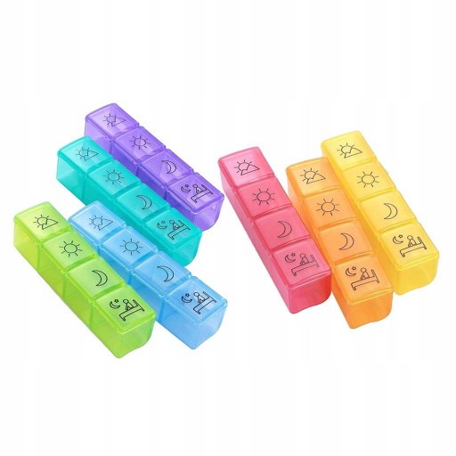 Органайзер для таблеток 4 рази на день: Ця коробка для таблеток на 7 днів дає змогу організувати ваші ліки вранці, вдень, увечері та перед сном. Кольорове кодування, прозорі кришки, які легко відкриваються, дозволяють легко ще раз перевірити, що ви приймали організовано та правильно приймав таблетки.