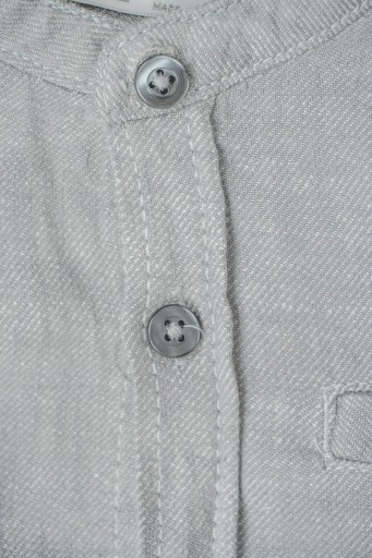 Нова дитяча бавовняна сорочкаZaraв сірому відтінку. Застібається на темно-сині гудзики. Круглий виріз. Спереду імітація кишені, застібається на гудзик. Довгі рукави, які підвертаються і застібаються на язичок, застібаються на манжетах. Внизу, з боків, має вставку з більш легкого матеріалу.