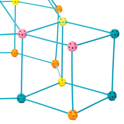 Інноваційні з'єднання у формі кулі, які жорстко і стабільно з'єднують елементи. М'яч тримаєбагато отворів під різними кутамизавдяки чому ми можемо побудувати будь-яку конструкцію, яку може уявити дитина.