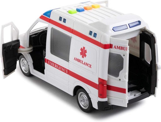- ця дитяча швидка допомога поєднує в собі простоту з функціональністю. З одного боку, це класична іграшка, яка зацікавить кожного малюка, а з іншого – інтерактивний гаджет. Швидка допомога пропонує такі звукові функції, як гудок, сирени, звук запуску двигуна та заднього ходу, а також світлові ефекти, які нагадують справжню машину швидкої допомоги. Транспортний засіб оснащений дверцятами, що відкриваються, що дозволяє помістити всередину улюблену фігурку і розігрувати реалістичні сцени. Все це робить гру з цією іграшкою надзвичайно привабливою та захоплюючою для дитини.