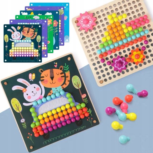 Завдяки цій іграшці дитина матиме можливість познайомитися з багатьма тваринами, кольорами, розвинути свою уяву та творчі здібності.Розвага полягає в тому, щоб застромити гриби в дошку з отворами.