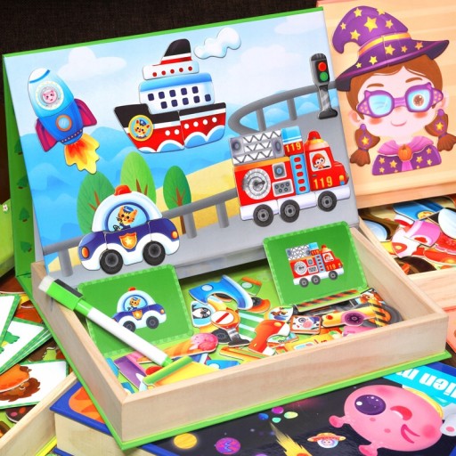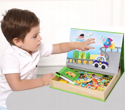 - 14 двосторонніх карток із зразками картинок для складання магнітними блоками