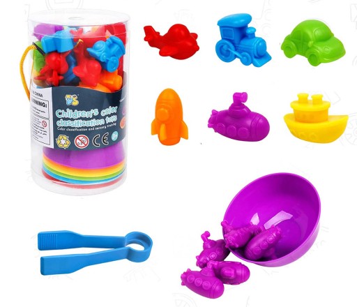 Гра, яка тренує спритність і рефлекси. За допомогою пластикового пінцета дитина сортує різнокольорові транспортні засоби по 6 мисках. Він може розділити їх за кольорами та формами. Це чудовий спосіб навчитися рахувати, додавати й віднімати буде легко.