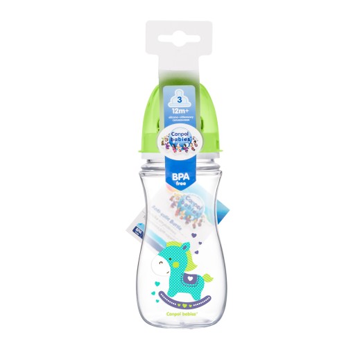 Пляшка проти коліків EasyStart TOYS легка, міцна та прозора. Його виготовлено з безпечного поліпропілену, що не містить BPA. Має силіконову соску 12м+, що нагадує форму маминих грудей. Це дозволяє легко поєднувати грудне вигодовування та годування з пляшечки. Він оснащений ефективною антиколіковою системою. Він має ємність 300 мл.