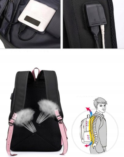 Рюкзак має додаткові функції, твихід для навушників мікророз'єм і вихід USB. У комплект входить кабель Jack і кабель USB, завдяки яким ви можете підключити свій павербанк до USB (зарядити телефон) і підключити гарнітуру до пристрою відтворення за допомогою вихідного джека.