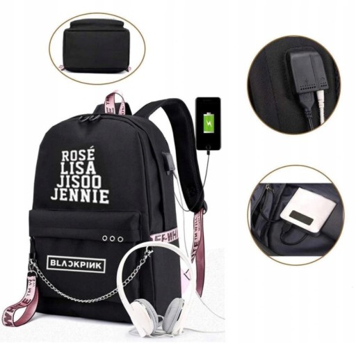 - Рюкзак додаєтьсяКабель USB, кабель для навушників Jack, кодовий замок, світловий пенал, сумка листоноші BLACKPINK