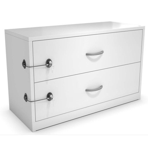 В комплекті 2 замки (чорний і білий) на холодильник і 4 ключа.