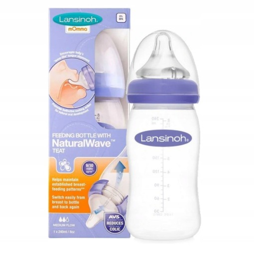 Нову скляну пляшечку для годування Lansinoh легше чистити та стерилізувати, вона на 100% екологічно чиста. Оснащений NaturalWave®, який був розроблений з думкою про закріплення хороших моделей, набутих під час грудного вигодовування у дитини.