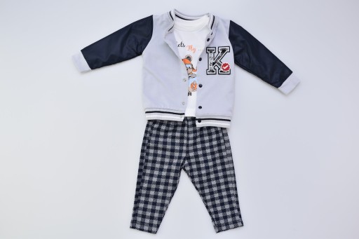 Комплект для хлопчика складається зі світшоту, сорочки з довгим рукавом та шортів.