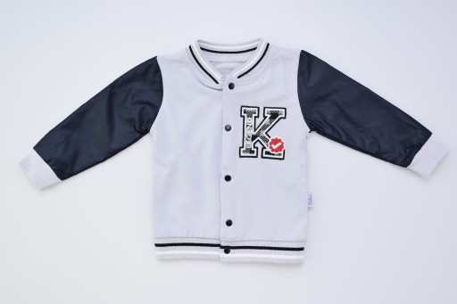 • Сірий бейсбольний світшот з чорними слизькими рукавами. Світшот застібається на чорні кнопки. Резинка на горловині, внизу світшота та на кінцях рукавів. На лицьовій стороні є декоративна нашивка - чорна літера K.Â