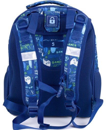 - Правильно розроблені задні панелі ранця з можливістю регулювання під висоту S/M/L допомагають підтримувати симетричне положення тулуба дитини.