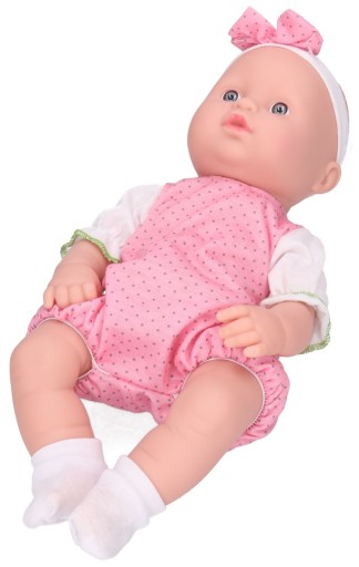 Лялька одягнена в короткий комбінезон і пов'язку.
