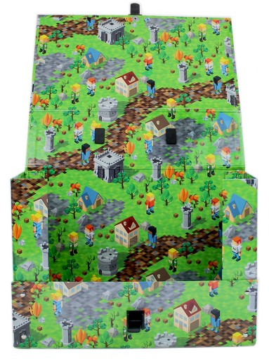 - Виготовлений з жорсткого, щільного, лакованого картону.