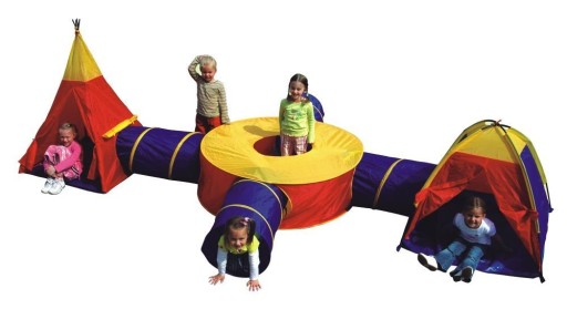 Набір із 7 різних наметів, об'єднаних в однувеликий дитячий майданчикце чудовий спосіб розважитися на природі. Дякуюуніверсальний дизайнможливість конфігурації та комбінування елементів необмежена.