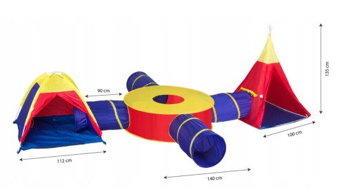 - У набір входить: намет, тіпі, бордюр, 4 тунелі